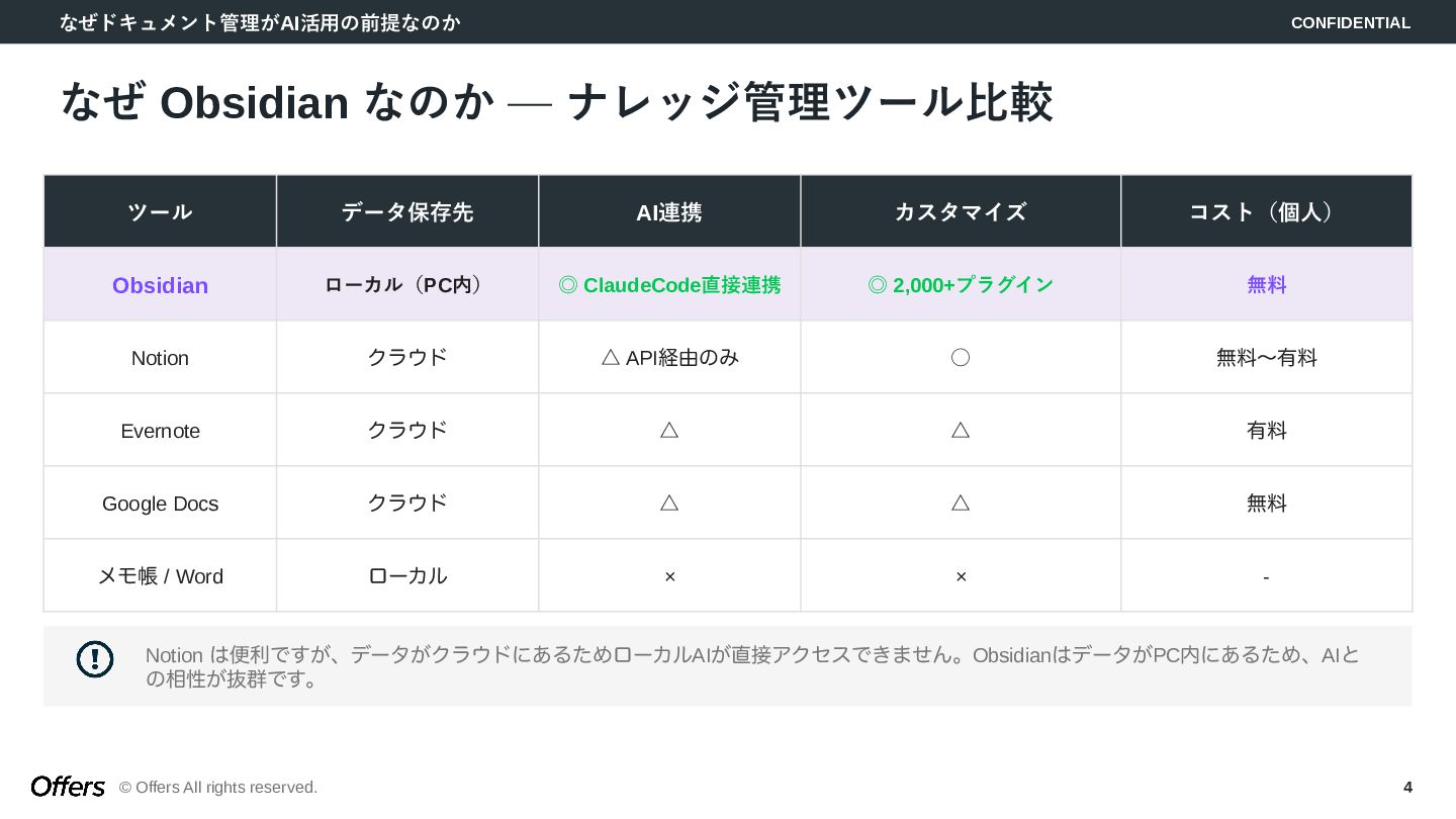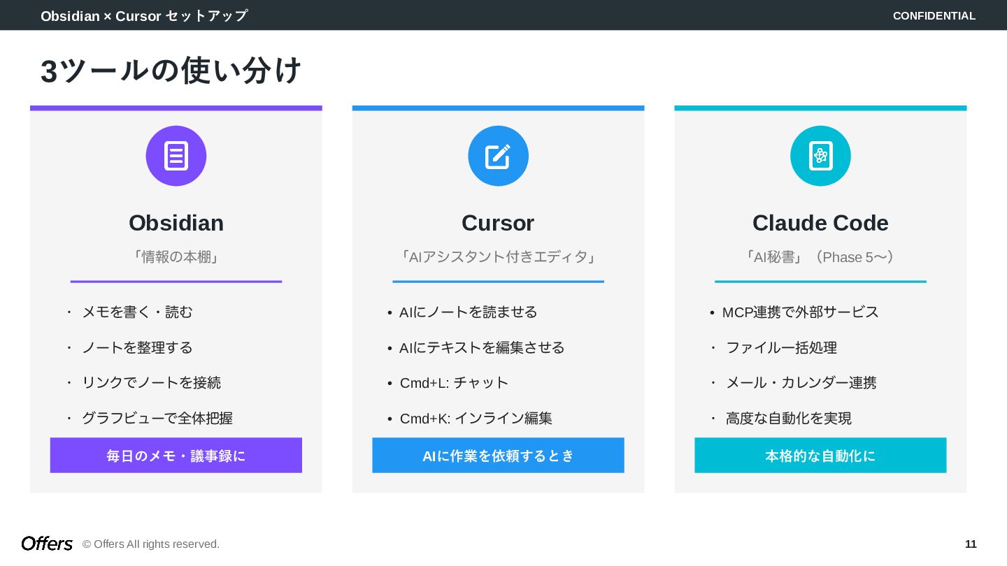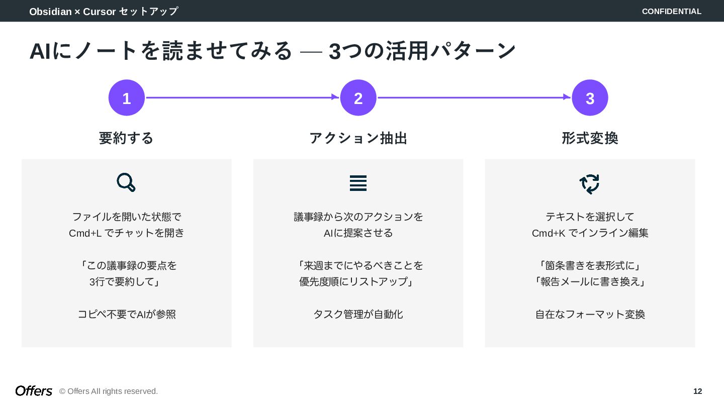 AI活用の最大のボトルネックは「情報の散在」。Obsidian × Cursorで、AIが直接参照・編集できるローカル情報基盤(Vault)を構築します。覚えるMarkdown記号はたった10個です。