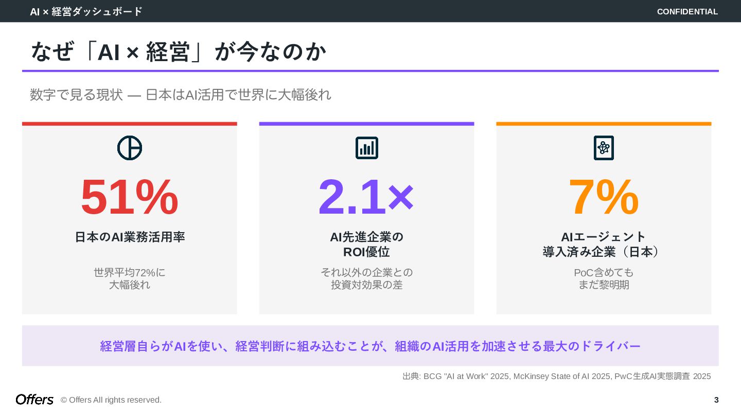 3. AI × 経営ダッシュボード CONFIDENTIAL © Offers All rights reserved. 3