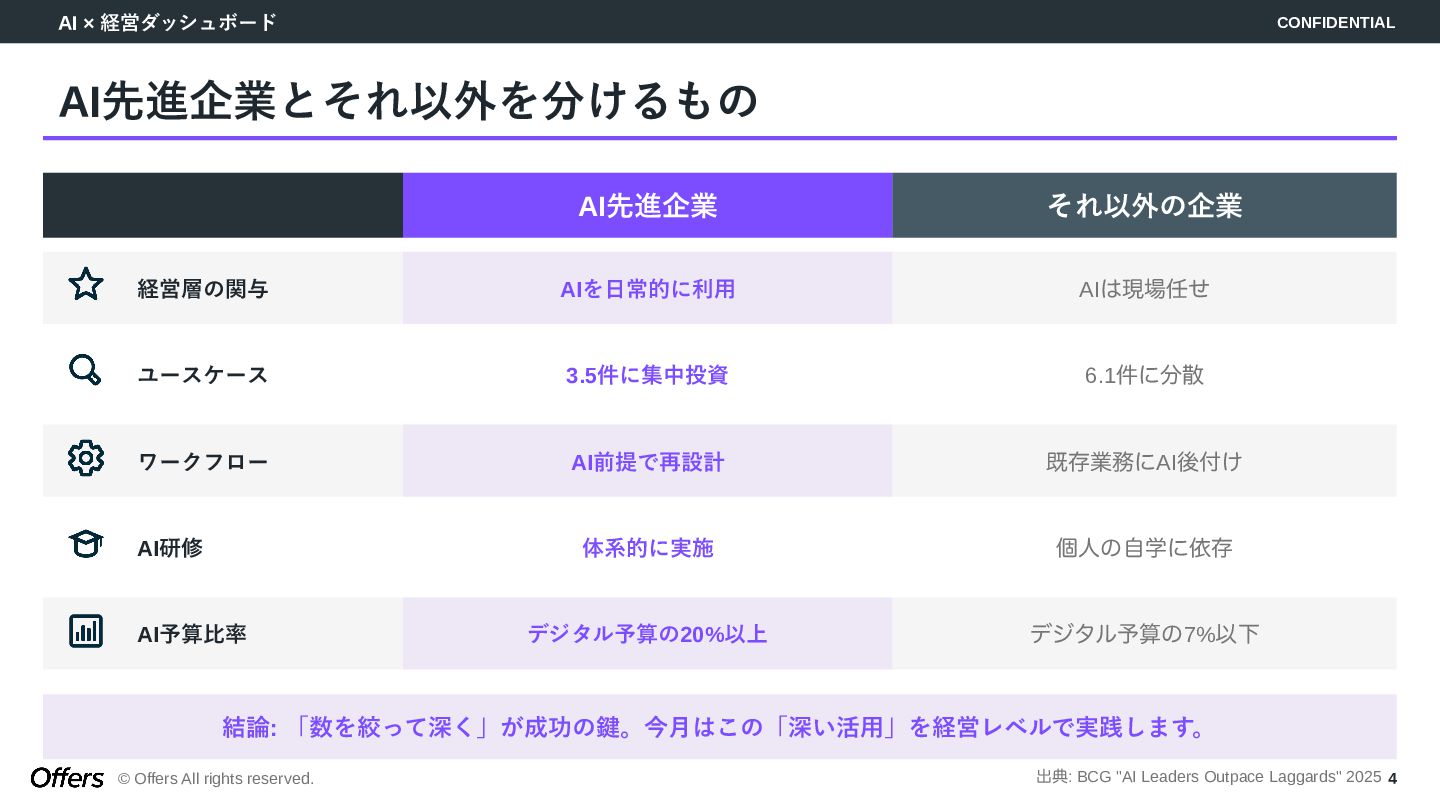 4. AI × 経営ダッシュボード CONFIDENTIAL © Offers All rights reserved. 4