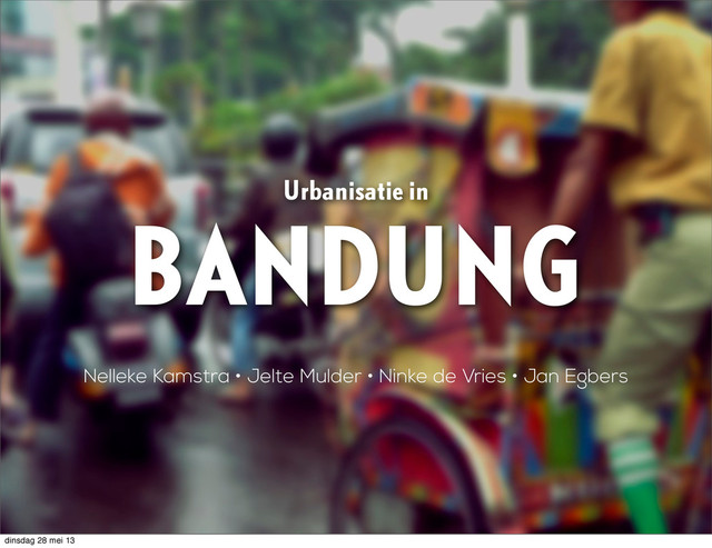 mensen naar de stad) • Bevolkingsgroei in Bandoeng absurd hoog • Door overurbanisatie criminaliteit, armoede, werkloosheid, slechte voorzieningen dinsdag 28 mei 13