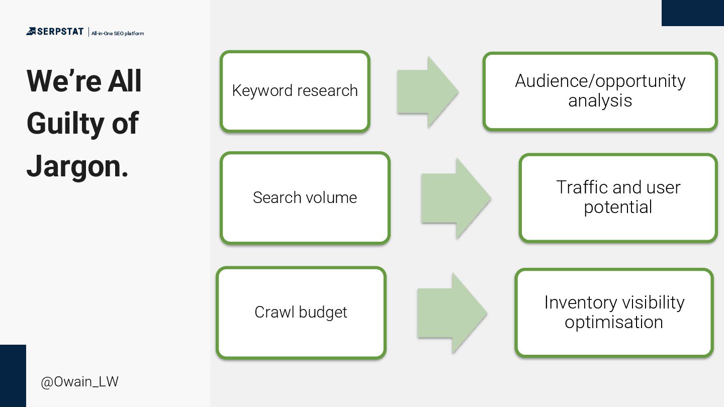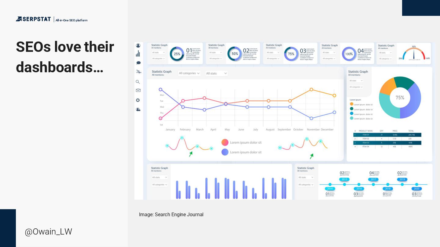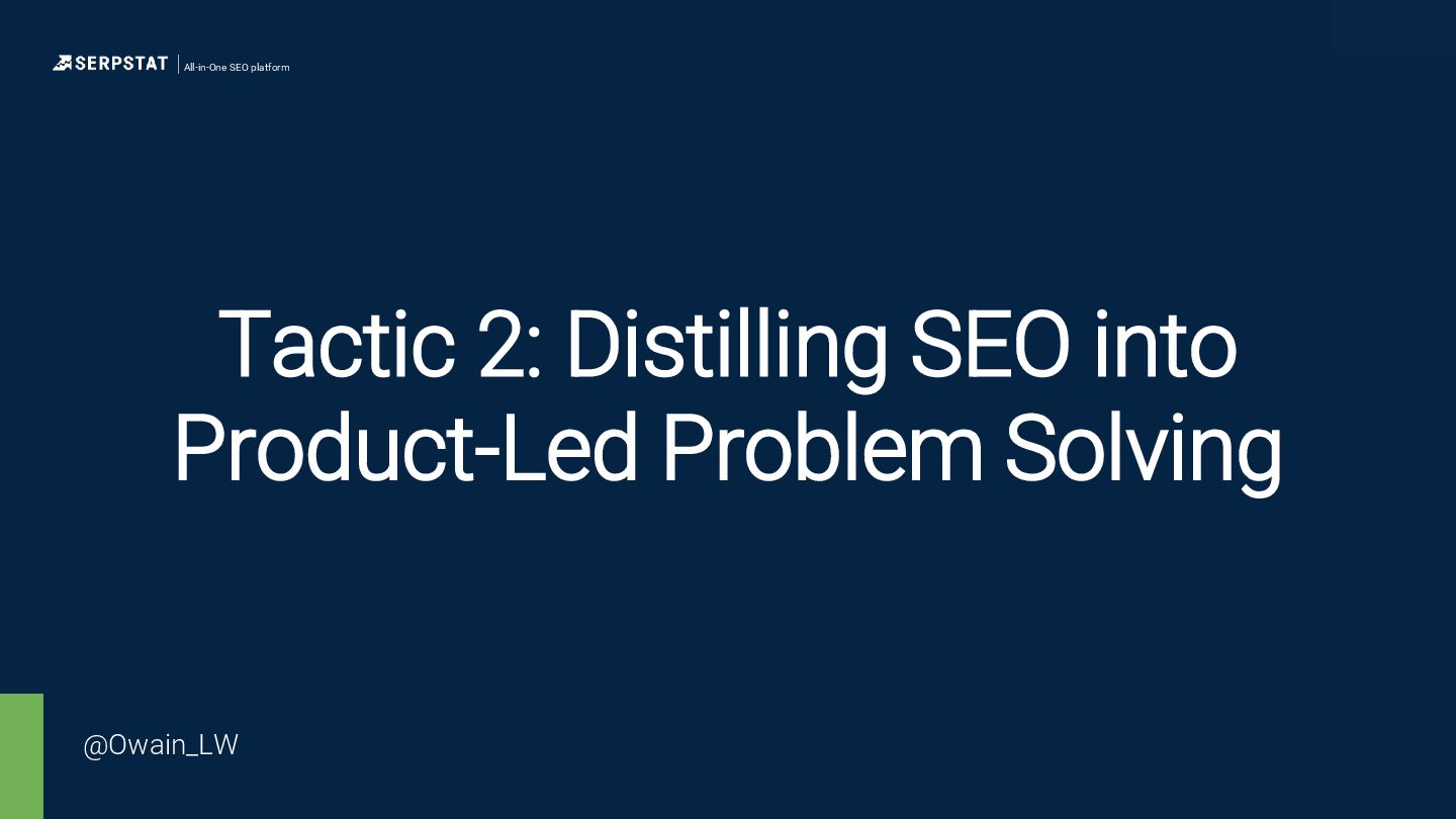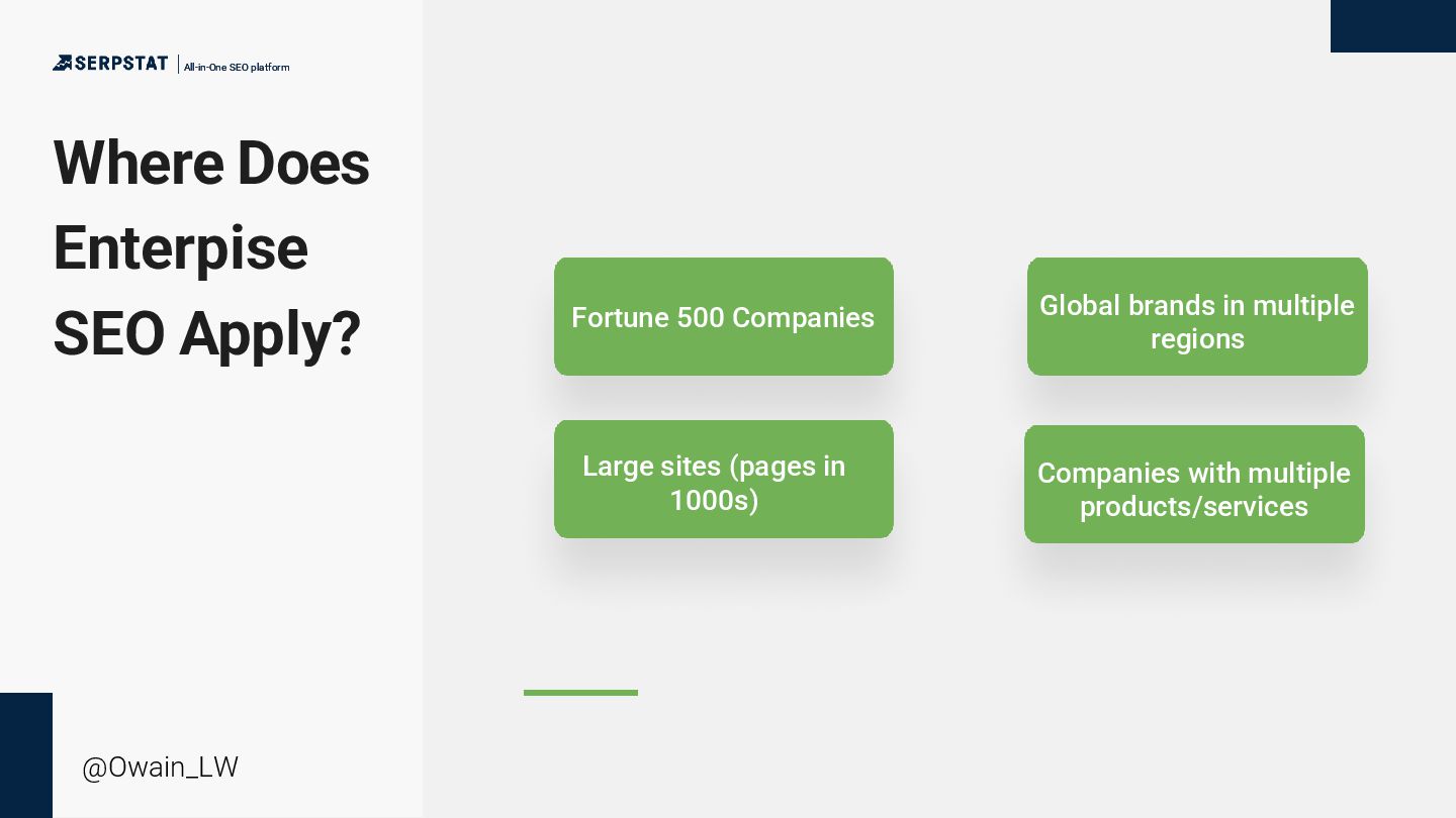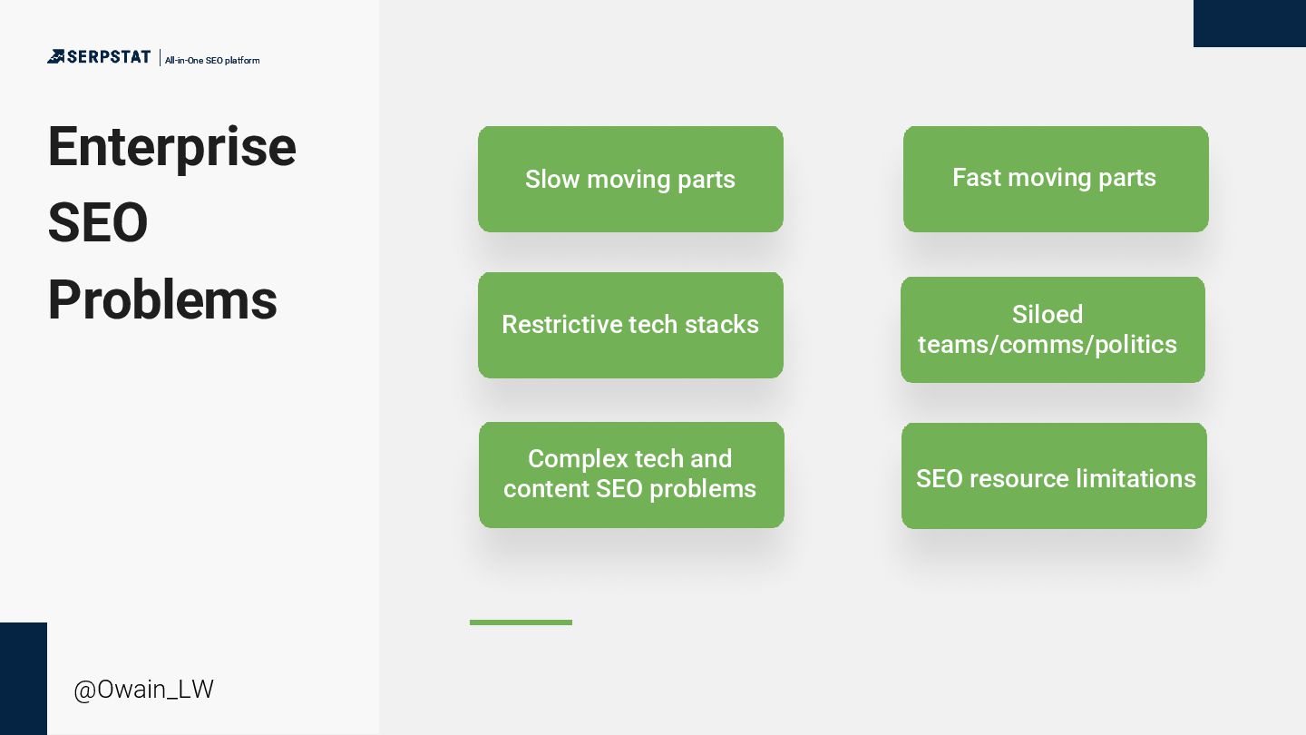 background as a writer/editor - Went solo in 2020 - Consults with a number of global brands with large teams and site inventories - Ecommerce, international SEO, technical SEO and China SEO focus - Has an ambient music project “side hustle” All-in-One SEO platform All-in-One SEO platform @Owain_LW