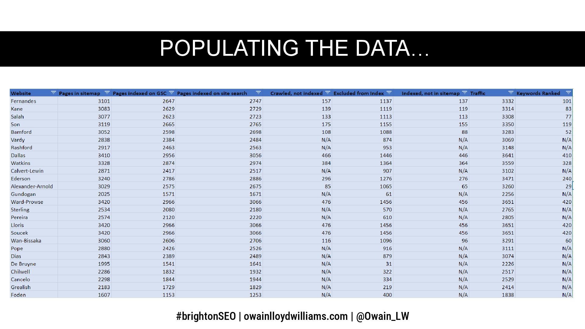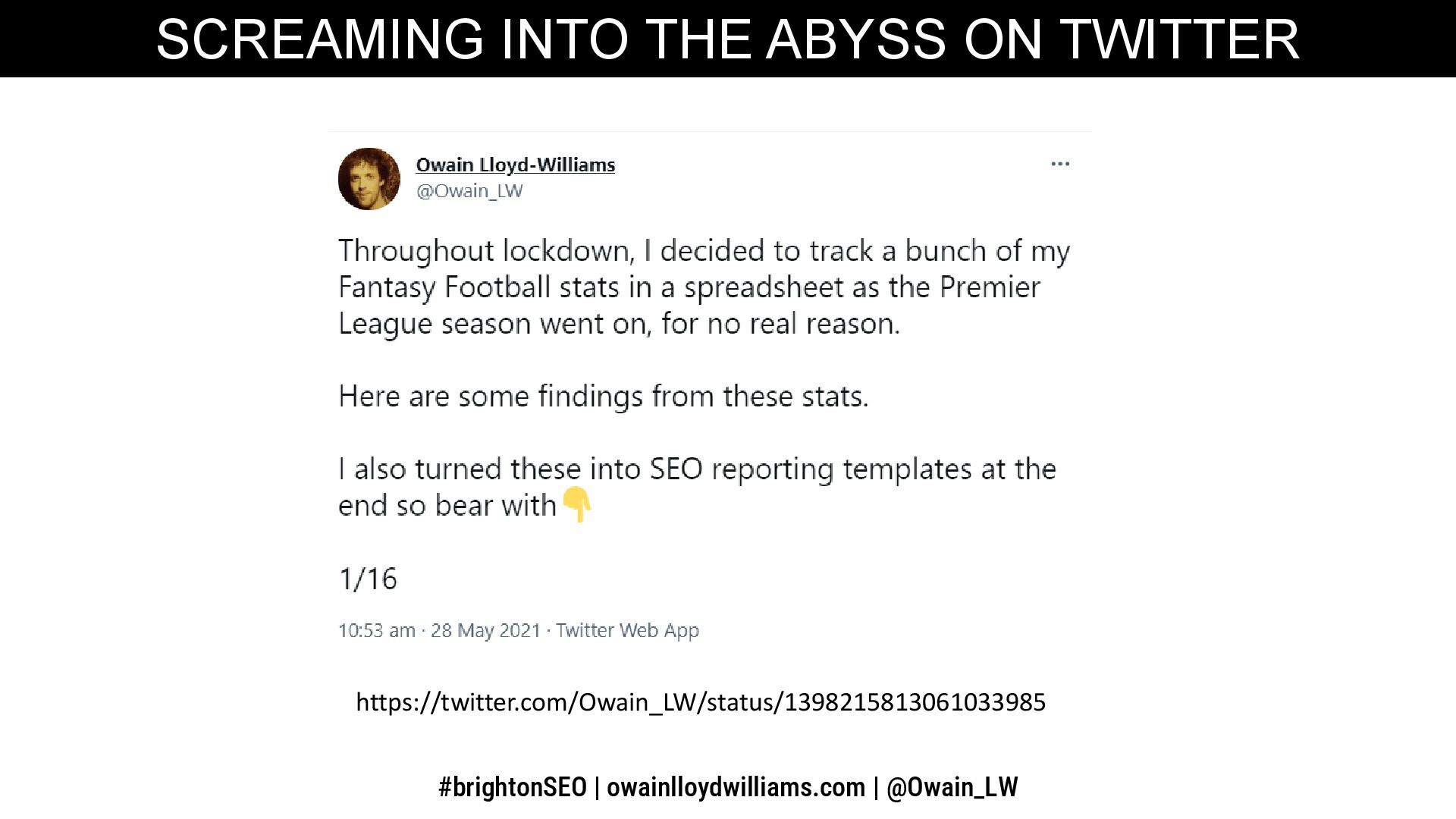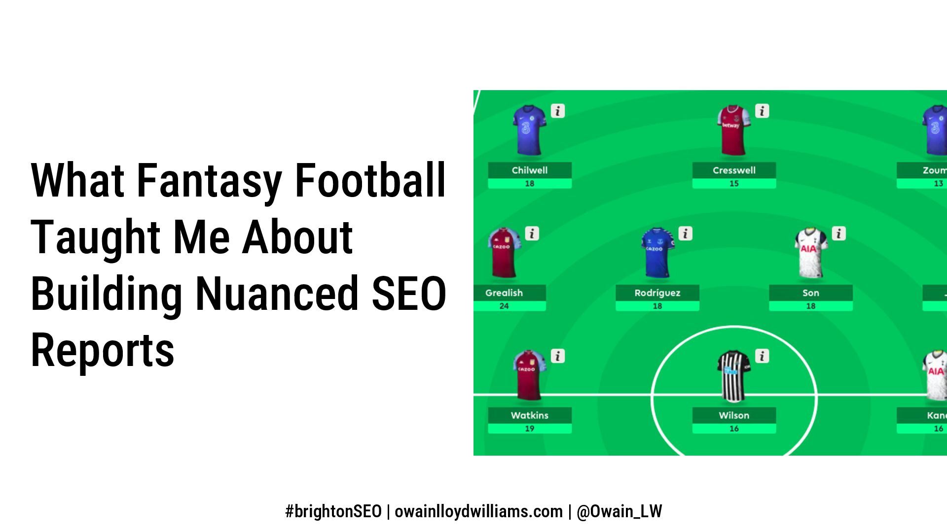 The document explores the parallels between fantasy football and building nuanced SEO reports, highlighting the importance of incorporating various data points like crawl stats and traffic metrics. It emphasizes how utilizing statistical analysis can enhance SEO reporting and contextualize issues better. The author shares insights on tools, templates, and manual reporting processes to improve SEO reporting effectiveness.