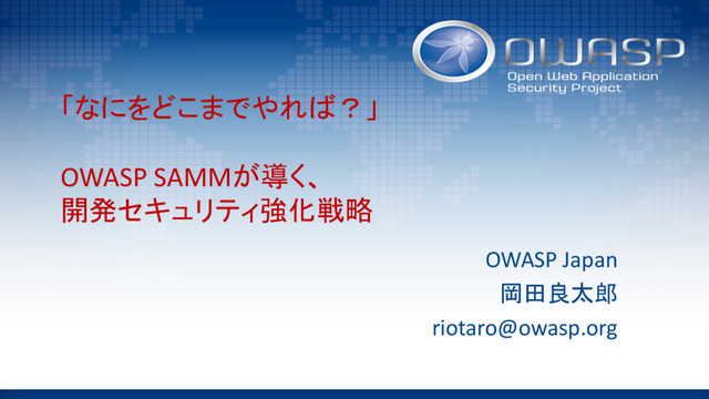 セキュリティ活動の妥当性や効果の評価 • セキュリティ姿勢強化ロードマップ • 採用企業: Dell uses OWASP’s Software Assurance Maturity Model (Owasp SAMM) to help focus our resources and determine which components of our secure application development program to prioritize., (Michael J. Craigue, Information Security & Compliance, Dell, Inc.) 日本語訳は経済産業省のプロジェクトで翻訳