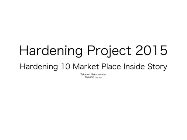 )BSEFOJOH1SPKFDU )BSEFOJOH.BSLFU1MBDF*OTJEF4UPSZ Takanori Nakanowatari OWASP Japan