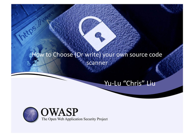 you from trying to use source code scanner • Is TO SHARE my perspecMves when choosing a commercial soluMon • Is TO SHARE how to use available soluMons to build your own scanner