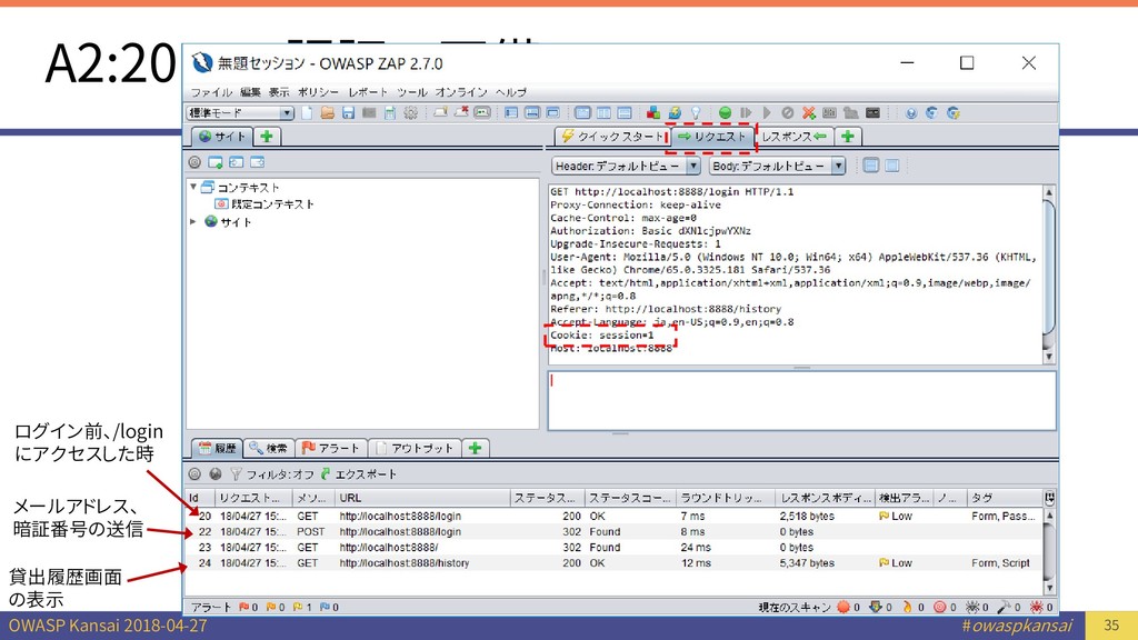BadLibraryに メールアドレス:[email protected]、暗証番号:1234でログ イン ② 検索語句に通常の語句と「' OR 1=1;--」を入れた時の違いを見てみましょ う 内部で実行されるSQL 29 select * from (history inner join books on history.bid=books.id) inner join users on history.uid=users.id where books.title like '% %' and uid = 21 ORDER BY date1; ' OR 1=1;-- { "vulnerabilities" : { "sqli" : ["search"] } } config.json