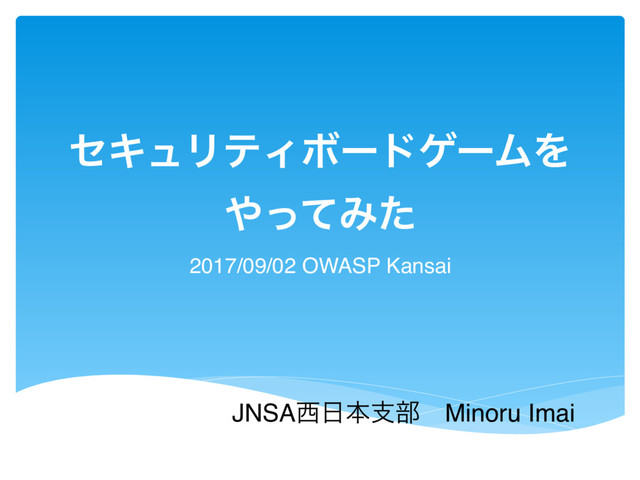 ηΩϡϦςΟϘʔυήʔϜΛ ͬͯΈͨ 2017/09/02 OWASP Kansai JNSAຊࢧ෦ɹMinoru Imai