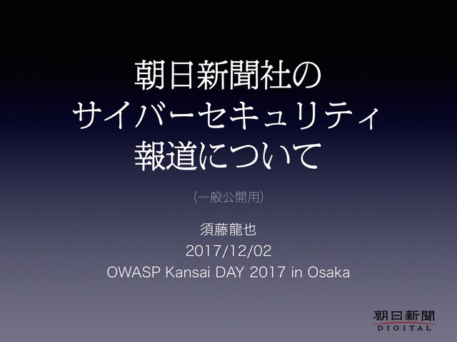 OWASP Kansai DAY 2017 in Osaka 〜初心者でもわかるサイバーセキュリティ〜でご発表いただいた