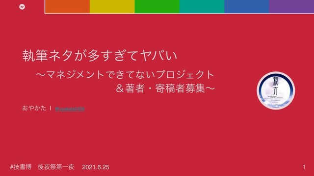 #ٕॻതɹޙࡇୈҰ ɹ2021.6.25 ࣥචωλ͕ଟ͗ͯ͢Ϡό͍ ͓͔ͨ | @oyakata2438 1 ʙϚωδϝϯτͰ͖ͯͳ͍ϓϩδΣΫτ ˍஶऀɾدߘऀืूʙ