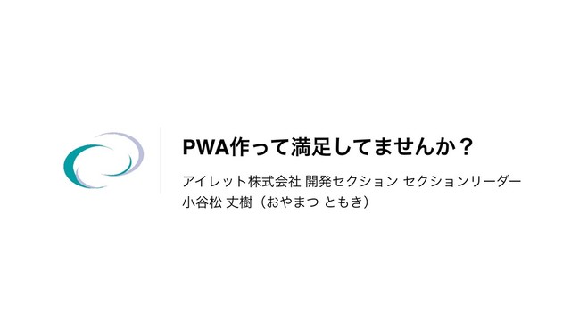 PWA࡞ͬͯຬͯ͠·ͤΜ͔ʁ ΞΠϨοτגࣜձࣾ ։ൃηΫγϣϯ ηΫγϣϯϦʔμʔ খ୩দ ৎथʢ͓·ͭ ͱ͖ʣ