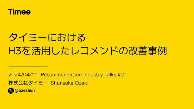 2024/04/11 Recommendation Industry Talks #2 株式会社タイミー Shunsuke Ozeki タイミーにおける H3を活用したレコメンドの改善事例