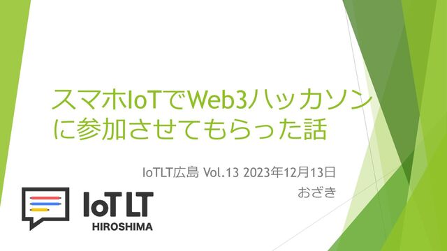 スマホIoTでWeb3ハッカソン に参加させてもらった話 IoTLT広島 Vol.13 2023年12月13日 おざき