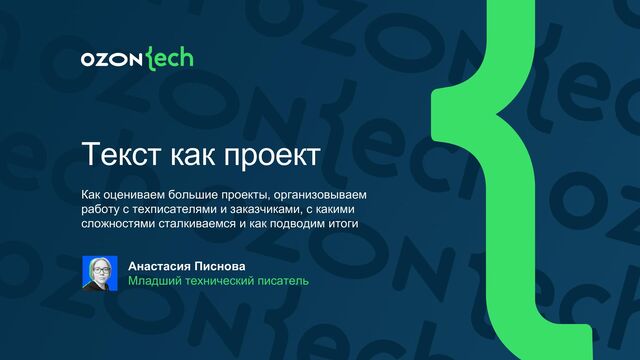 с какими сложностями сталкиваемся и как подводим итоги Текст как проект Анастасия Писнова Младший технический писатель
