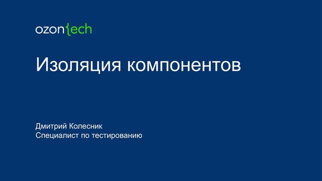 Изоляция компонентов Дмитрий Колесник Специалист по тестированию