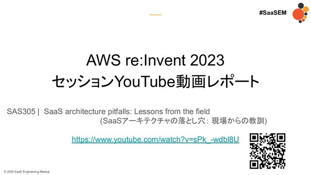 SaaS Engineering Meetup オンラインイベント 第6回 続・AWS re:Invent 2023 SaaS関連報告会