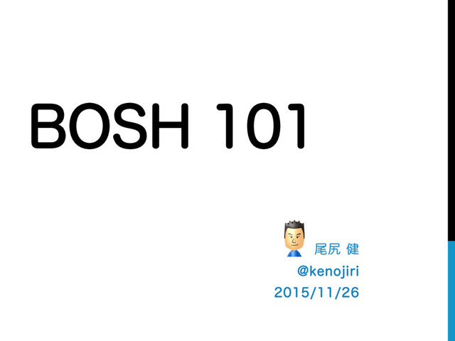 Cloud Foundryで標準の構築手段として使われている、だけじゃないBOSHというツールの基本的な話をします。 BOSHに特有のわかりづらい概念も含め、使い方とか内部動作とかを、わかりやすく解説するよう努力した結果のスライドです。 2015/11/26の第29回PaaS勉強会 http://paas.connpass.com/event/22653/ にて発表。