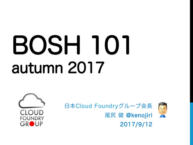 Cloud Foundryで標準の構築手段として使われている、だけじゃないBOSHというツールの基本的な話をします。 BOSH特有の概念も含め、使い方とか内部動作とかを、わかりやすく解説するよう努力した結果のスライドです。