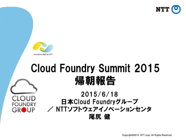 2. Verizon now testing CF for internal use 3. Comcast Cloud Services 4. Garmin Connect 5. DigitalGlobe Next Generation Satellite Ground System 6. Orange ElPaaso 7. Allstate Insurance Company Infrastructure Service 8. Huawei Communication as a Service 9. Humana Cue and Agile Tools 10.CoreLogic Platform 11.Kroger Internal Cloud 12.CenturyLink Internal Cloud 13.Lockheed Martin Agile Adoption 14.GE IoT / Industrial Cloud Platform 紹介されたユーザストーリー(概ねセッション時系列順)