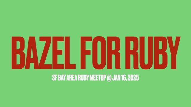 A talk about using Bazel in Ruby projects for SF Bay Area Ruby Meetup on January 16, 2025 (https://lu.ma/goujxu3a?tk=xB1NnX).