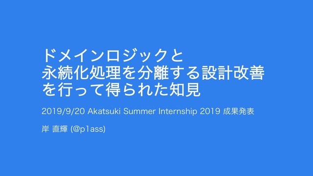 ブログ↓ ドメインロジックと永続化処理を分離する設計改善を行って得られた知見【アカツキ インターン】 https://blog.p1ass.com/posts/aktsk-intern/