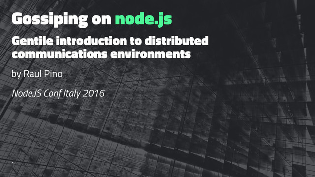 Presented in NodeJSConf 2016 - http://nodejsconf.it/talk/gossiping-node-js