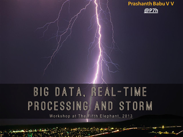 Workshop on "Big Data, Real-time Processing and Storm" at The Fifth Elephant, 2013 Bangalore, India on 11th July, 2013.