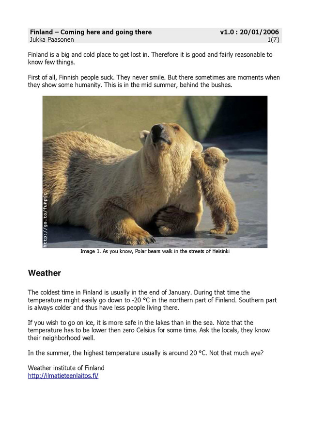 Finland is a big and cold place to get lost in. Therefore it is good and fairly reasonable to know few things.