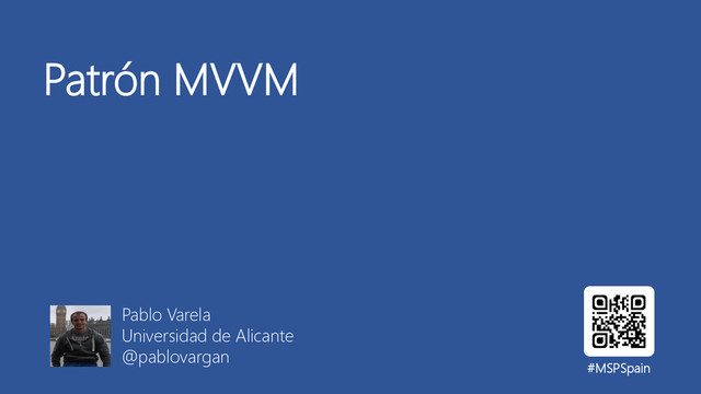 Patrón MVVM Pablo Varela Universidad de Alicante @pablovargan #MSPSpain