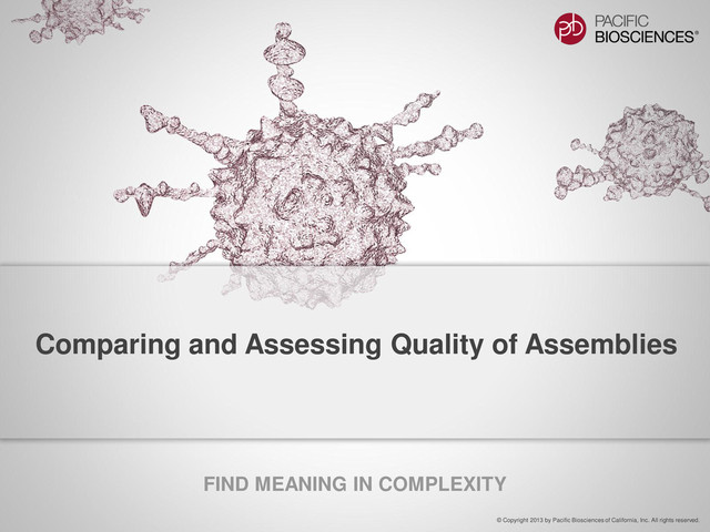 do not capture assembly quality • Consider also misassemblies, base-level accuracy, and your scientific goals • Mauve and Nucmer are tools to assess assembly quality • Quiver can be used to polish assemblies Where to Find More Information • Mauve: http://gel.ahabs.wisc.edu/mauve/ • Nucmer: http://mummer.sourceforge.net/ • Quiver: https://github.com/PacificBiosciences/GenomicConsensus/blob/master/ doc/HowToQuiver.rst