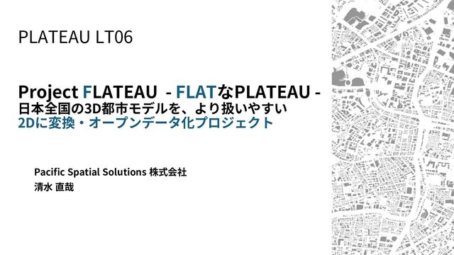 2024年6月19日「PLATEAU LT06」で発表した「Project FLATEAU - FLATなPLATEAU - 日本全国の3D都市モデルを、より扱いやすい2Dに変換・オープンデータ化プロジェクト」紹介資料です。 データは「Source Cooperative」よりダウンロードしてご利用いただけます。 https://beta.source.coop/repositories/pacificspatial/flateau/description/