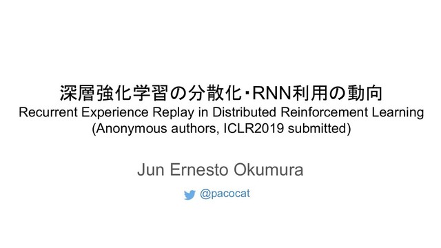 submitted https://openreview.net/forum?id=r1lyTjAqYX [2] Volodymyr Mnih, et al., Asynchronous methods for deep reinforcement learning. In International conference on machine learning, pp. 1928–1937, 2016. https://arxiv.org/abs/1602.01783 [3] Matthew Hausknecht and Peter Stone. Deep recurrent Q-learning for partially observable MDPs. CoRR, abs/1507.06527, 7(1), 2015. https://arxiv.org/abs/1507.06527 [4] Dan Horgan, et al., Distributed prioritized experience replay. ICLR2018. https://arxiv.org/abs/1803.00933 [5] Lasse Espeholt, et al. Impala: Scalable distributed deep-rl with importance weighted actor-learner architectures. arXiv preprint arXiv:1802.01561, 2018. https://arxiv.org/abs/1802.01561
