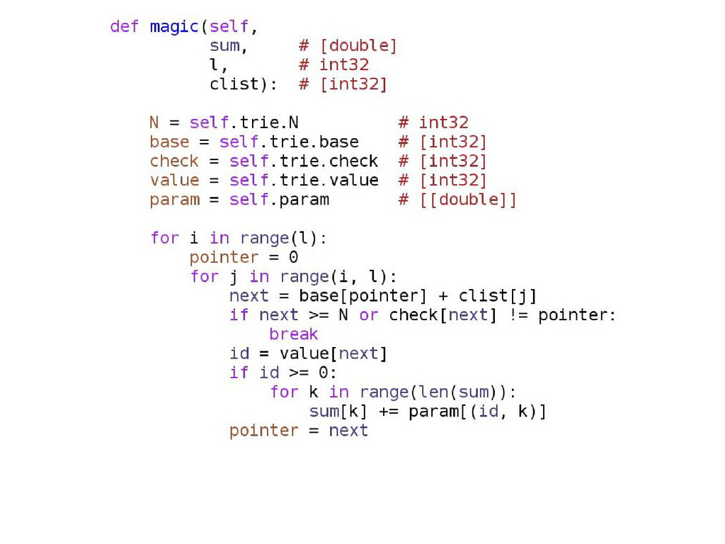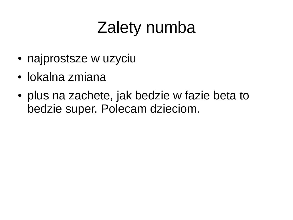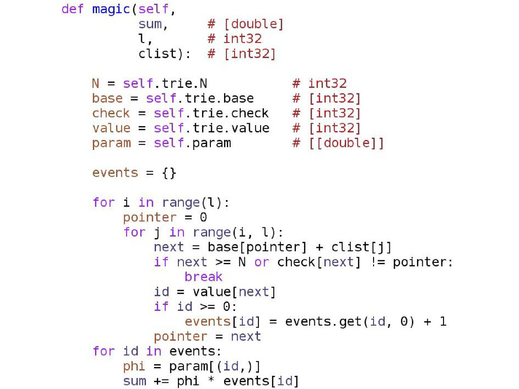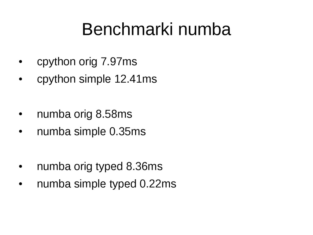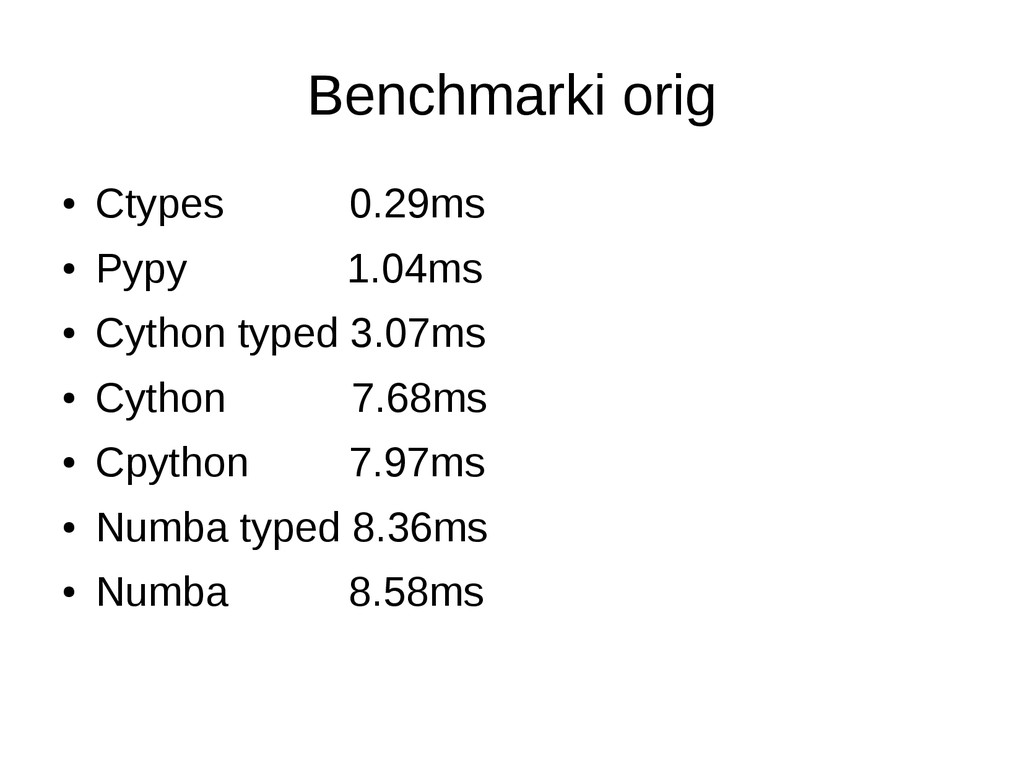 • opcjonalne statyczne typowanie • dokumentacja/community slabe • duze problemy przy instalacji (LLVM) • projekt na razie alfa – leci czesto notimplemented – przyklady z dokumentacji nie dzialaja