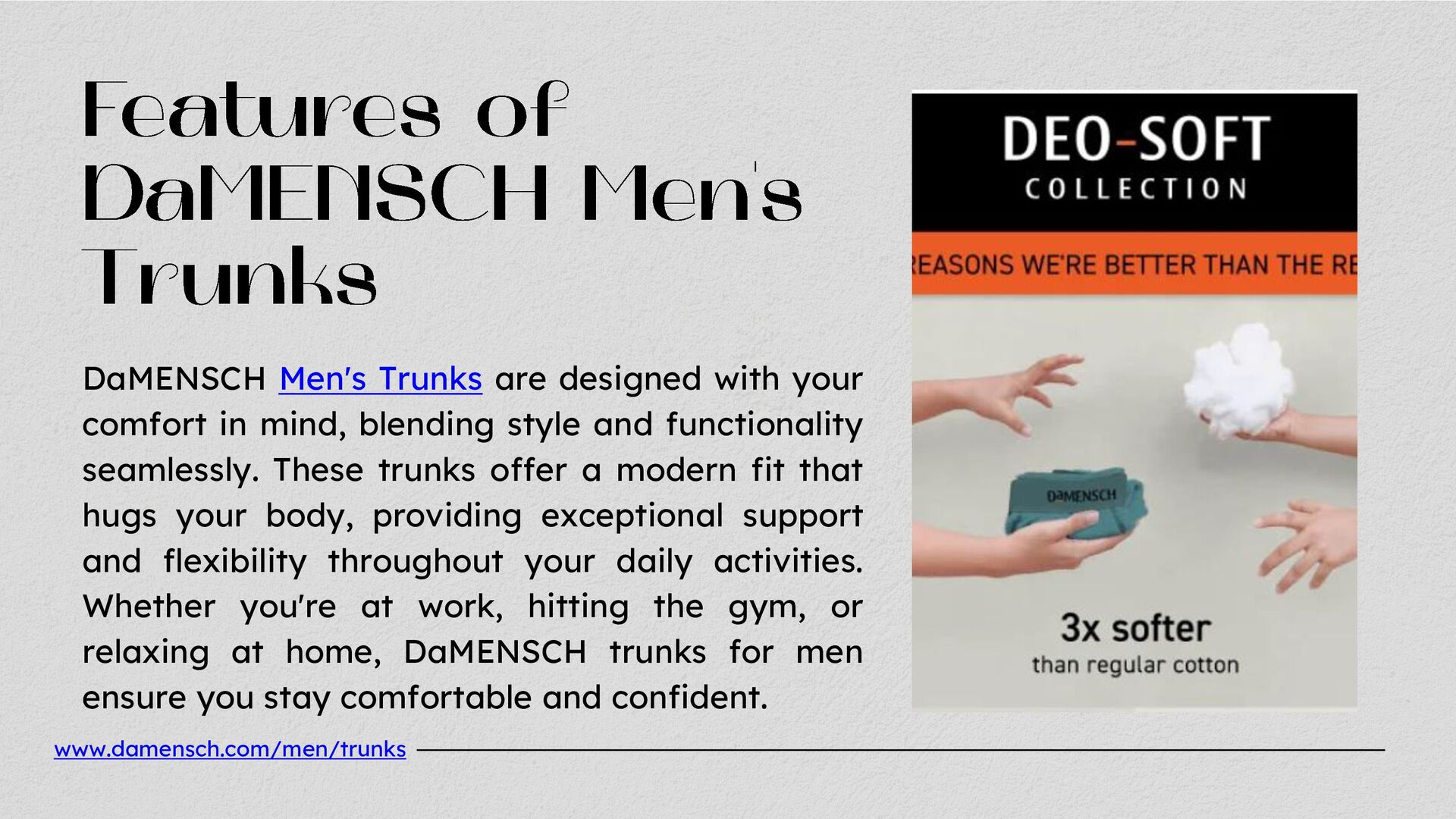 At DaMENSCH, we bring you the best Men's trunks that redefine comfort and style. Our Trunks for Men are crafted with moisture-wicking technology, ensuring that you stay fresh and dry throughout the day. These comfortable Men's trunks feature a breathable fabric that works in harmony with a superior microfibre waistband, providing a snug yet gentle fit.