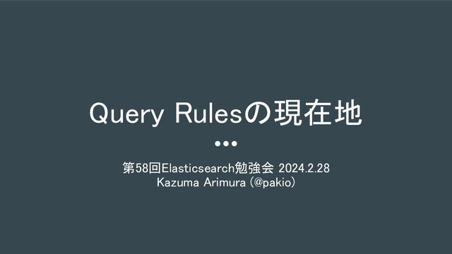 Query Rulesの現在地 第58回Elasticsearch勉強会 2024.2.28 Kazuma Arimura (@pakio)