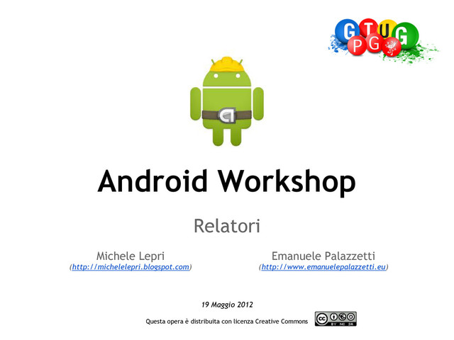 la Android Inc. • Nel 2007 nasce la Open Handest Alliance (OHA): da Motorola a Samsung, da Vodafone a T- Mobile, da intel a Texas Instruments • Obiettivo: piattaforma open senza freni e limiti (royalty!) • Proprio nel 2007 esce il primo SDK (una sorta di beta) • Nel 2008 il primo dispositivo “reale”: HTC G1 della T-Mobile • Fine 2008 google vende a 400 $ il Dev Phone 1, per sperimentare lo sviluppo e l’uso di app senza limiti dati dagli operatori • Curiosità: con la 1.1 obbligava i dispositivi ad avere una tastiera fisica! • Tastiera virtuale nella 1.5 (Aprile 2009) • 2.0 nel 10/2009 • 2.3 nel 12/2010: aggiunto supporto agli schermi XL (WXGA e superiori) • 3.0 nel 02/2011: versione ottimizzata per i tablet, nuova UI, accelerazione hardware e supporto processori multi-core • 4.0 nel 10/2011: UI completamente riprogettata per integrare smartphone e tablet ed un mare di migliorie di sistema • Curiosità: 5.0 (aka Jelly Bean) a breve questa estate