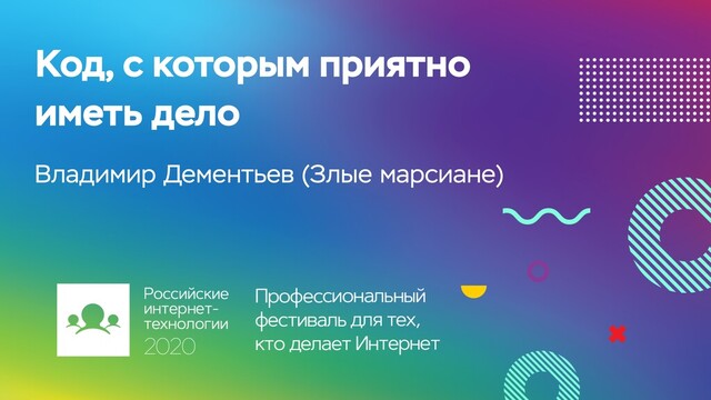 За годы работы над коммерческими и OSS-проектами я сформировал для себя список принципов, которыми должен соответствовать такой код, например: тестируемость, гибкость, расширяемость, узнаваемость и т.д. В докладе я рассмотрю этот «чек-лист» подробнее, а также приведу примеры из мира Руби и не только.