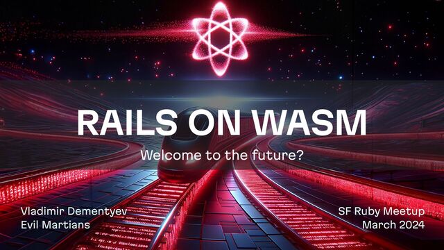 ??? ??? WebAssembly asm.js SQLite3 WASM Ruby 3.2 WASI support RubRuby.dev Rails on Wasm (SF Ruby Meetup) WASI ruby.wasm WASI Components We are here pglite
