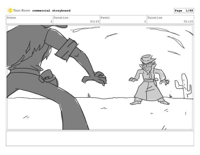 Scene 1 Duration 03:15 Panel 2 Duration 01:00 commercial storyboard