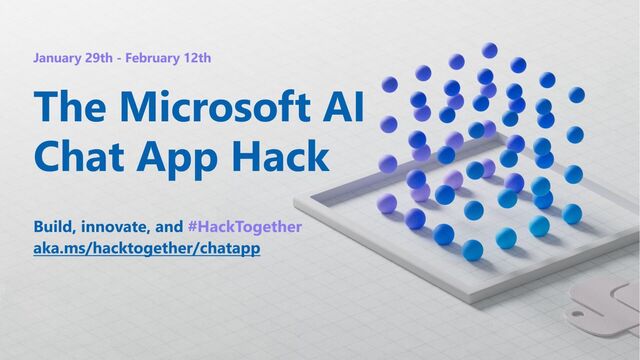 yourself in our discussion forum • Deploy the repo with the sample data • See steps on low cost deployment → • Hack, hack, hack, hack! • Post in forum if you have any questions. • Submit your project before February 12th to win prizes! • Join tomorrow’s sessions from MVPs! aka.ms/hacktogether/chatapp aka.ms/ragchat/free