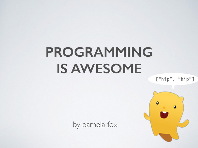PROGRAMMING IS AWESOME ! ! by pamela fox [“hip”, “hip”]