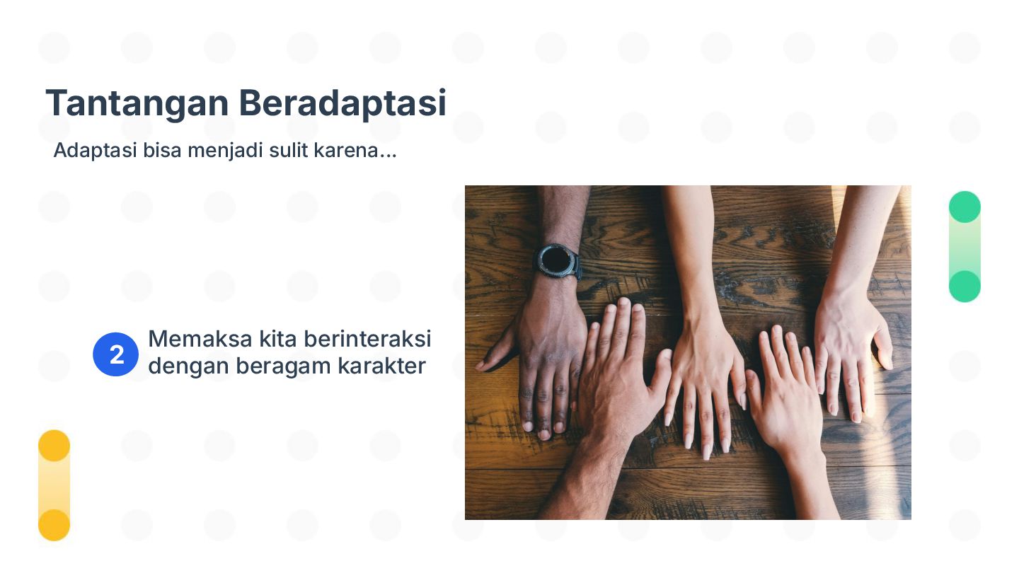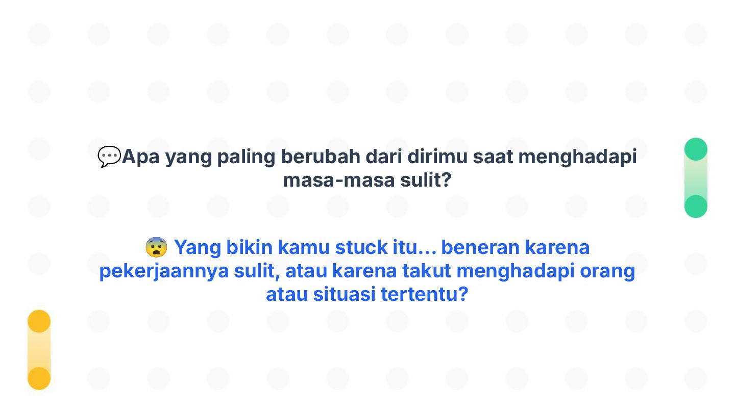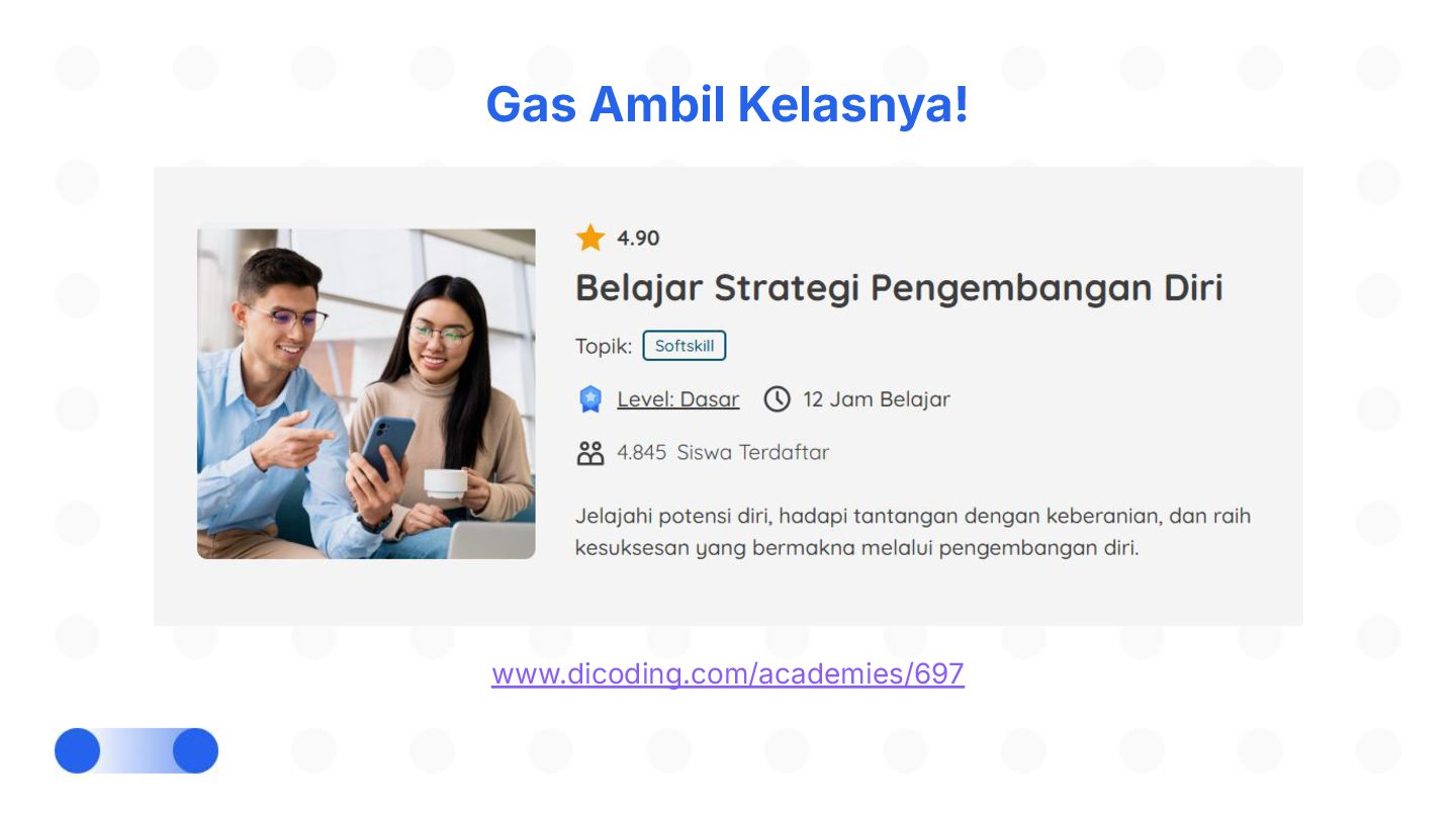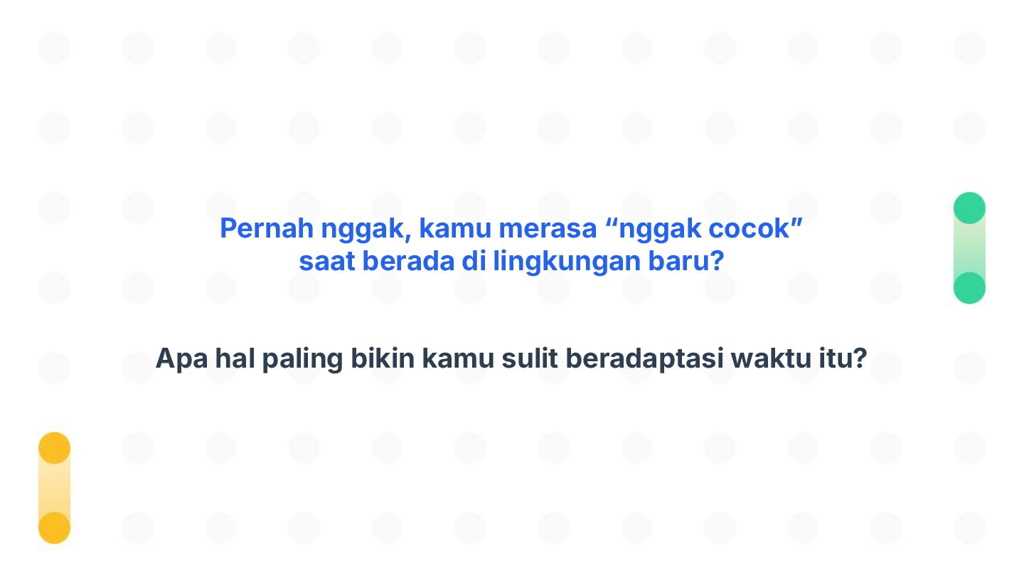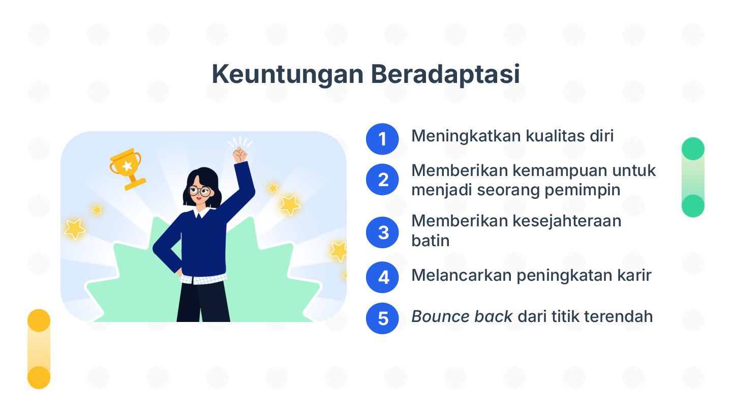 Perubahan bisa datang tiba-tiba—dan tidak selalu kita minta. Tapi tahukah kamu, kemampuan beradaptasi justru jadi salah satu kunci bertahan dan tumbuh di dunia yang cepat berubah? Dalam sesi Adaptasi Bukan Pilihan, Tapi Kunci untuk Berkembang!, kita akan mengupas kenapa adaptasi itu penting, mengenali tantangan-tantangan dalam prosesnya, dan menemukan cara beradaptasi yang bisa kamu latih sejak hari ini. Bukan hanya untuk bertahan, tapi juga untuk berkembang.
