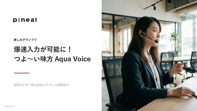 ©pineal Inc. 推しAIグランプリ 爆速入力が可能に! つよ〜い味方 Aqua Voice 2025.12.16|株式会社ピネアル 山崎真由子