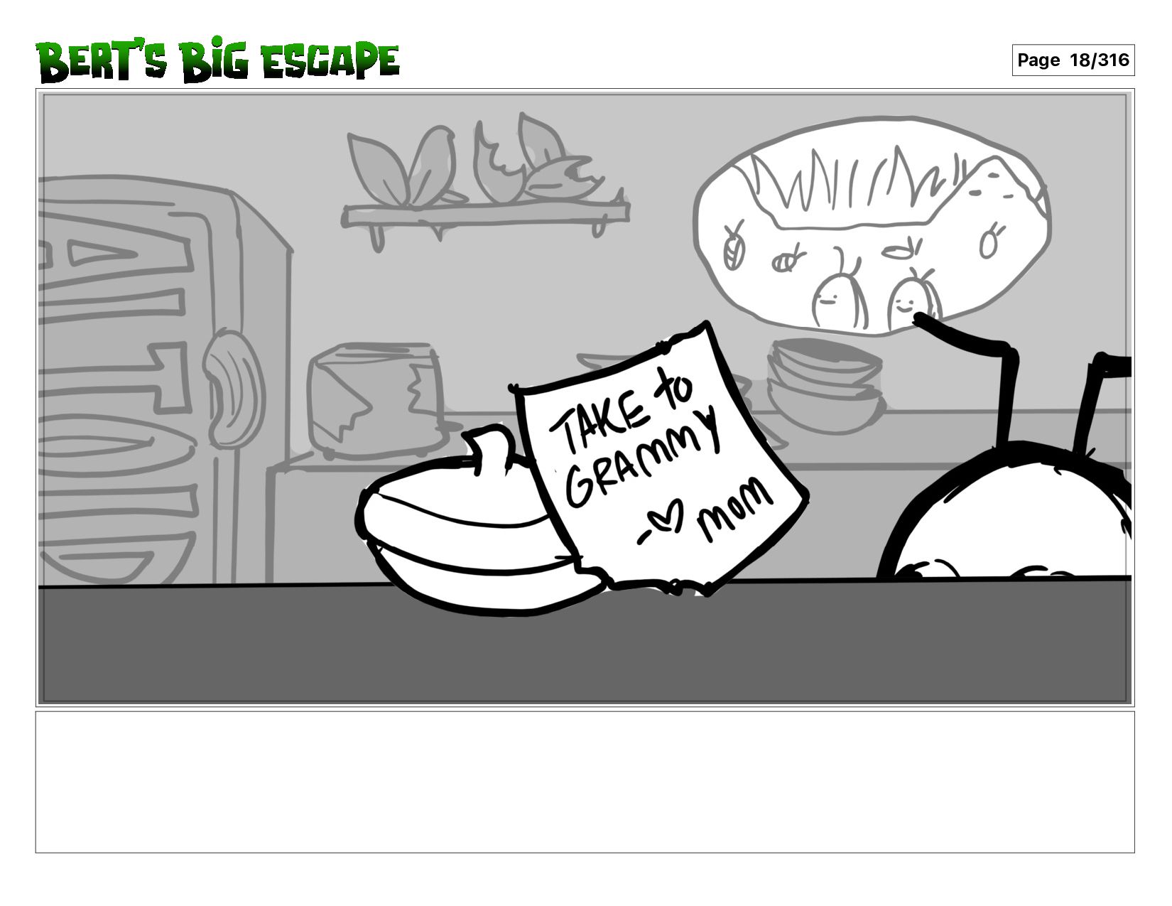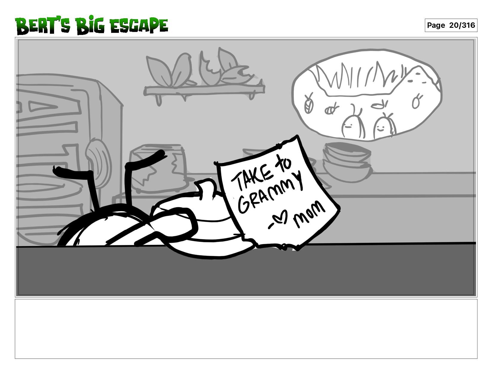When a pill bug named Bert gets trapped under a glass jar, he tries everything in his little body to get out just in time to see his ill grandma.