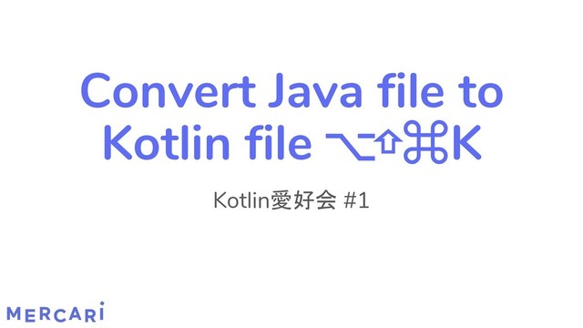 Convert Java file to Kotlin file ⌥⇧⌘K Kotlin愛好会 #1