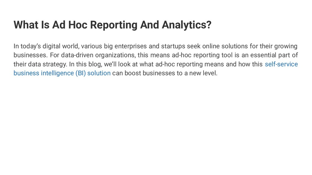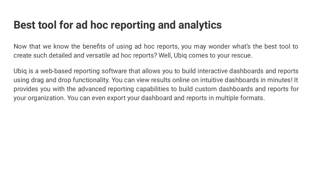 Visit: https://ubiq.co/analytics-blog/what-is-ad-hoc-reporting-and-analytics/