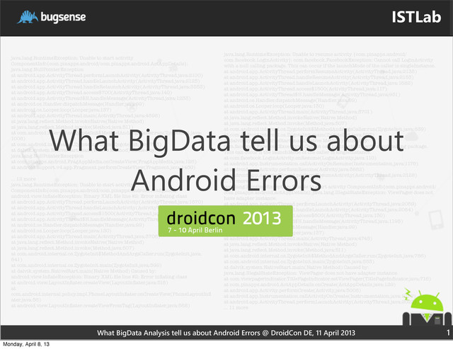 BugSense presentation at Droidcon Berlin 2013.