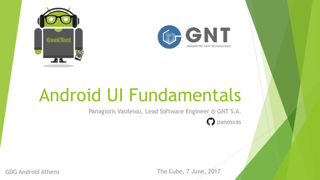 GDG - Android Athens: In this talk we will explore the Constraint Layout component alongside with the Android Studio UI Builder, to easily compose a responsive user interface from scratch. Moreover, we will cover basic UI testing using the new Android Studio tool named Espresso Test Recorder, to automatically generate UI test cases. Finally, we will discuss about the Google Android Associate Certification and preparation tips to get officially certified!