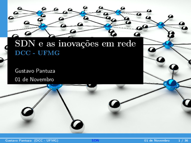 • Os experimentos tem mostrado resultados excelentes • Existe muito área pra pesquisa • Redes modernas para aplicações modernas • Redes programáveis • Padrões abertos para construção de redes Gustavo Pantuza (DCC - UFMG) SDN 01 de Novembro 35 / 36