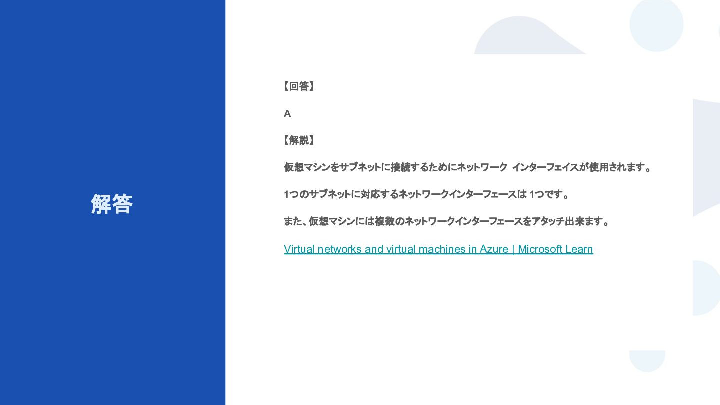 15. © Techpit,inc All Rights Reserved. 解答 【回答】 A 【解説】 仮想マシンをサブネットに接続するためにネットワーク